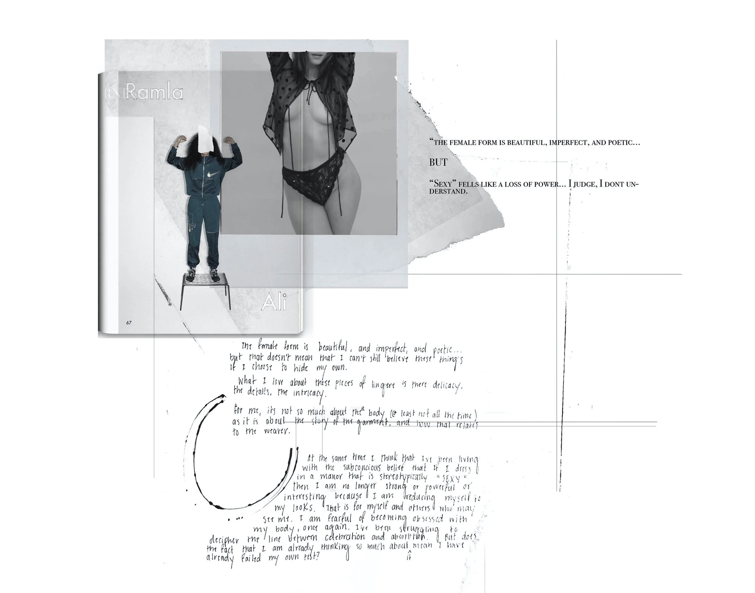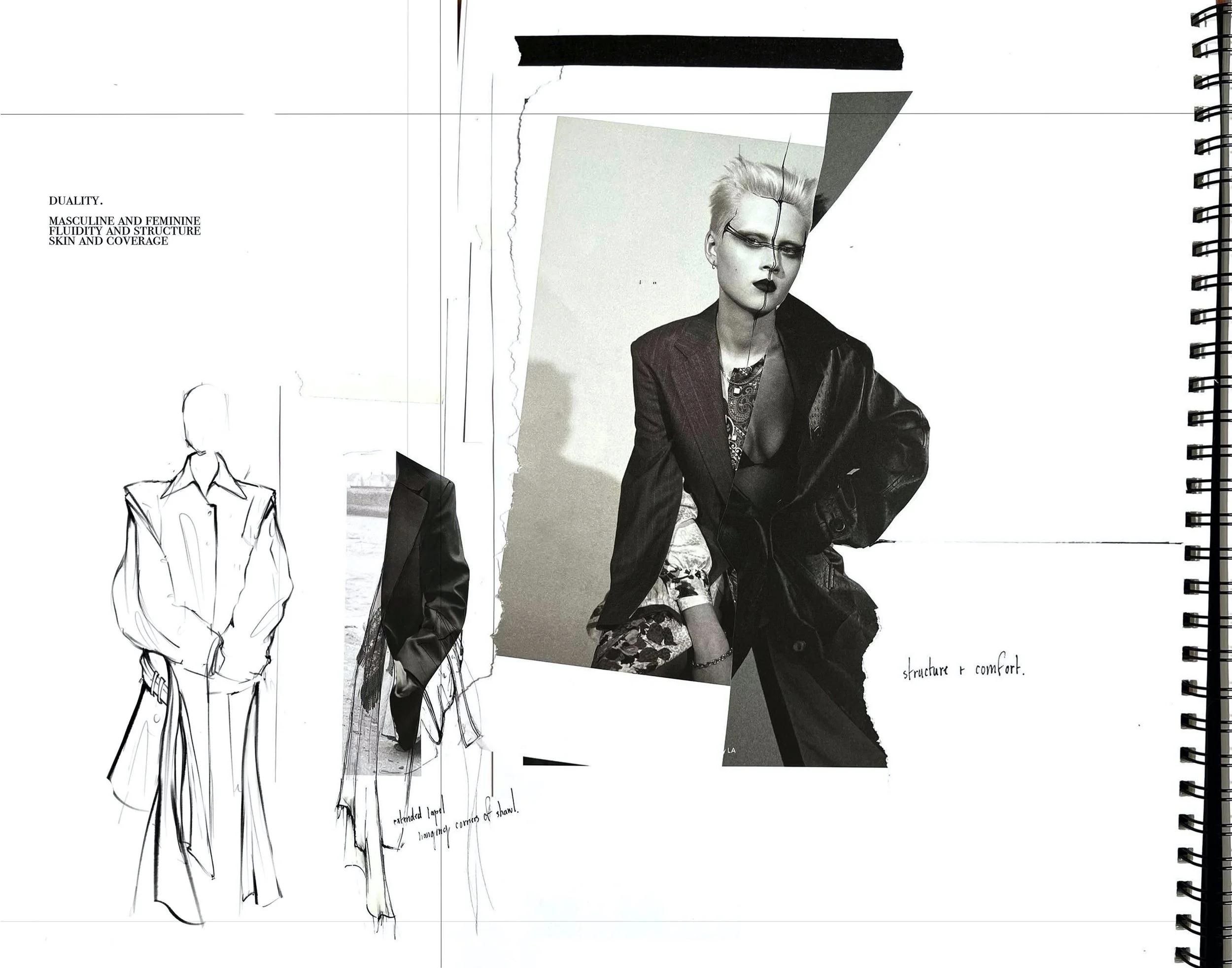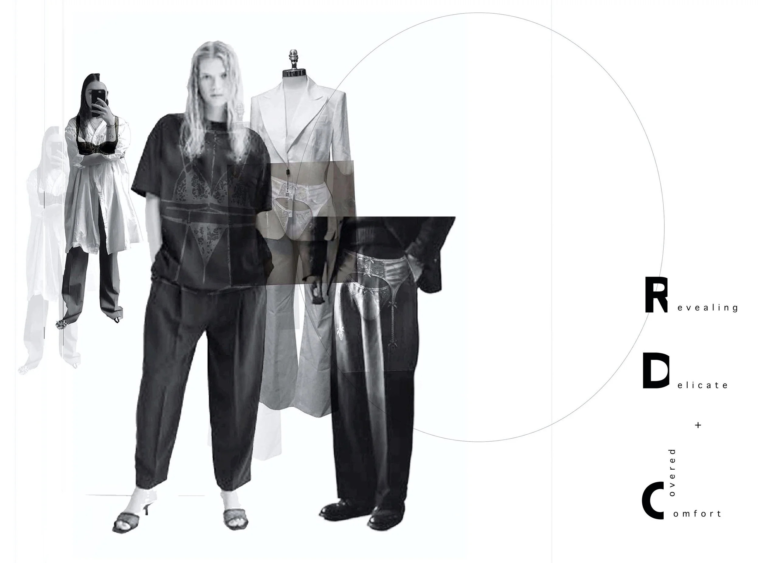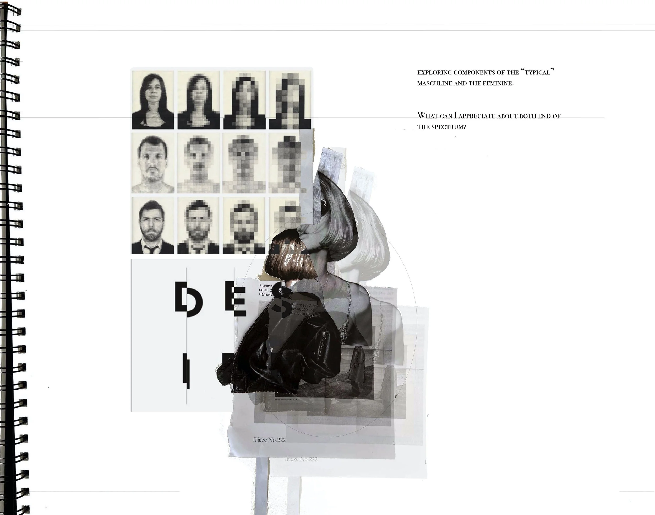 My thesis concept came together through a series of conversations that I have had with friends and family members about the nature of my own sartorial taste. My tendency to wear oversized, neutral, “unsexy”, menswear inspired pieces of clothing on a daily basis was questioned… My instinct was to leave the conversation or shut them up, because they just didn’t “get me”. Instead, I tried to challenge myself to think deeper about why I actually reject my femininity so much. Why do I choose to hide my body? And why do I judge those who dress with more sex appeal so harshly?