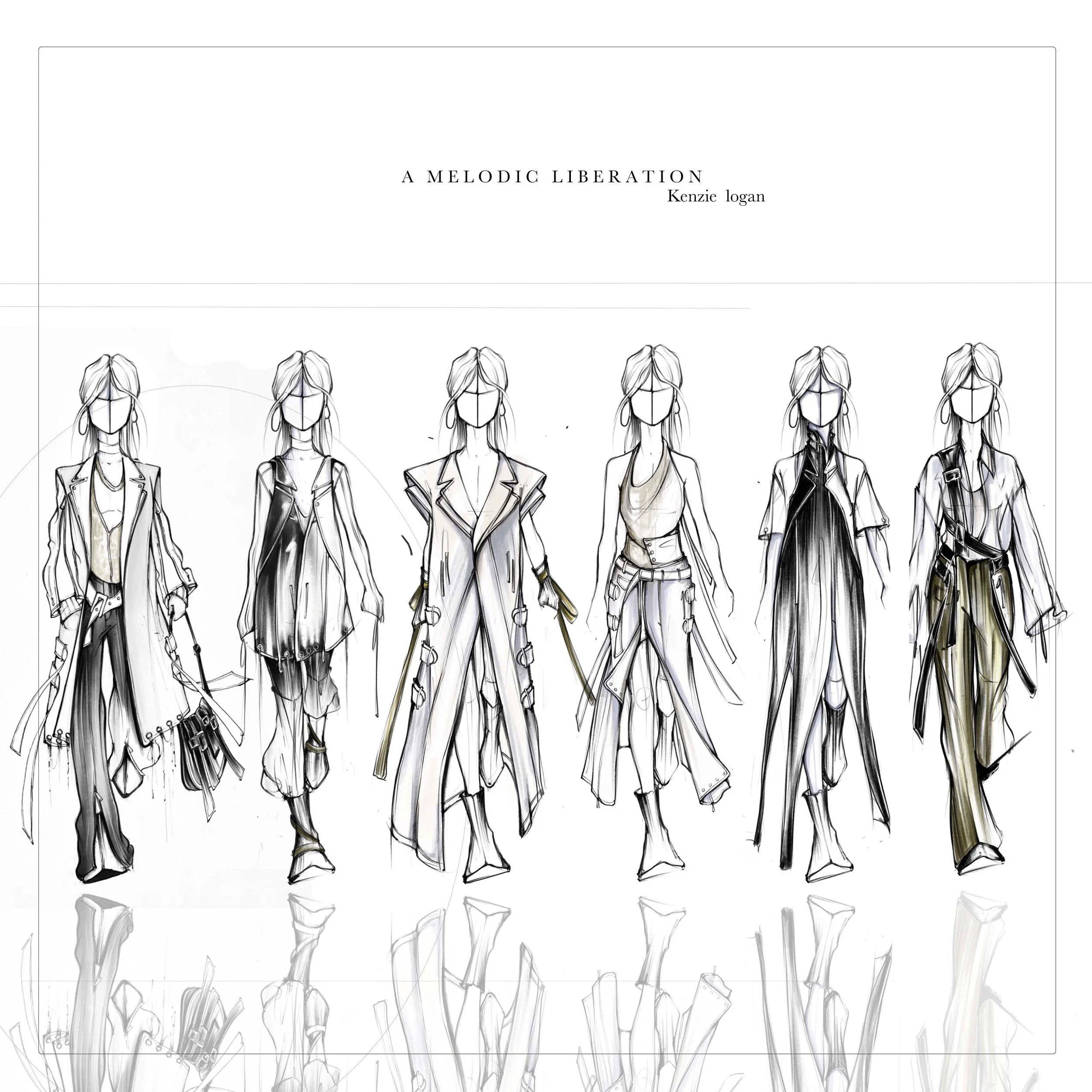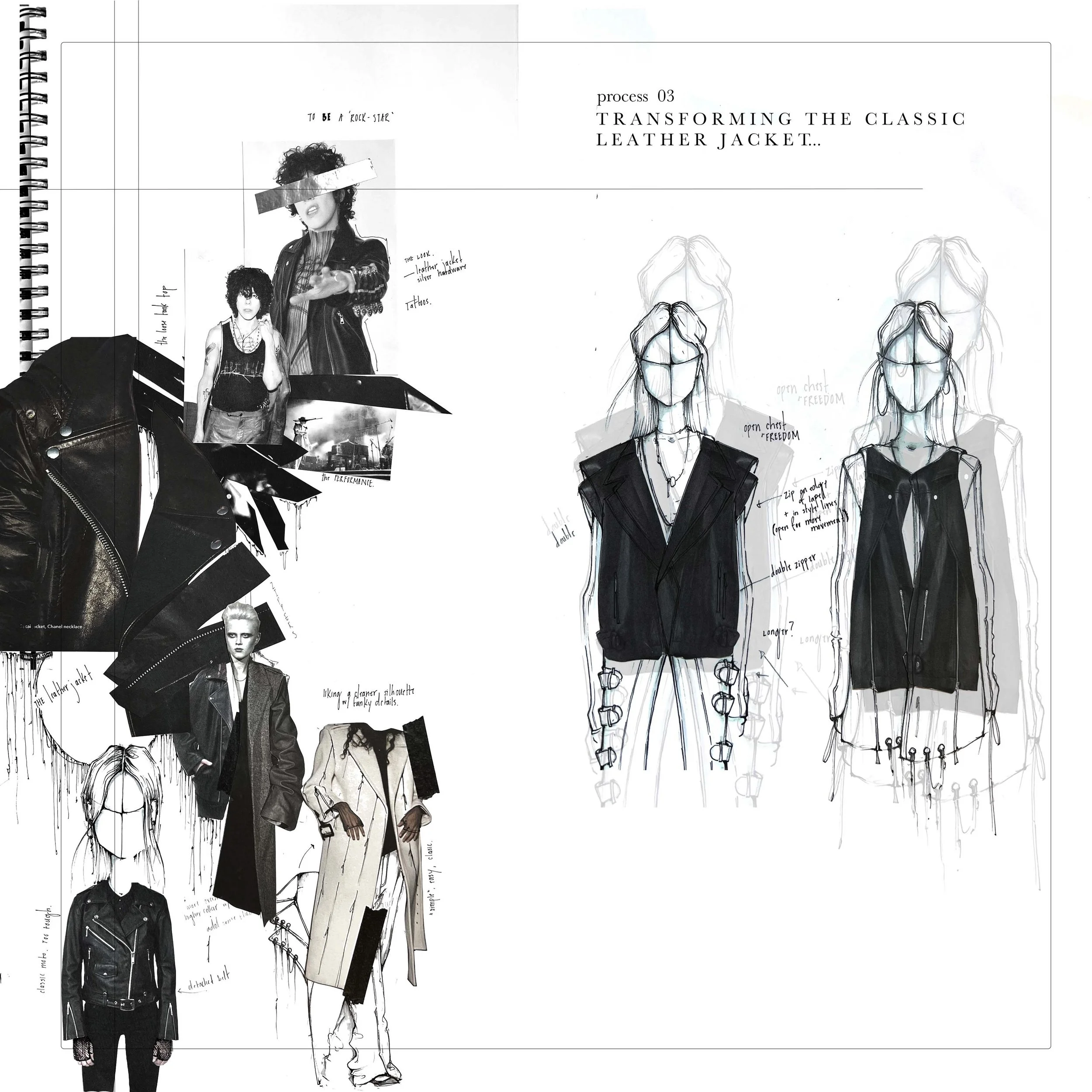 A collection inspired by two of my favorite female musicians. One, whose essence is etherial, feminine and soft. The other, raw, rocker, and androgynous.