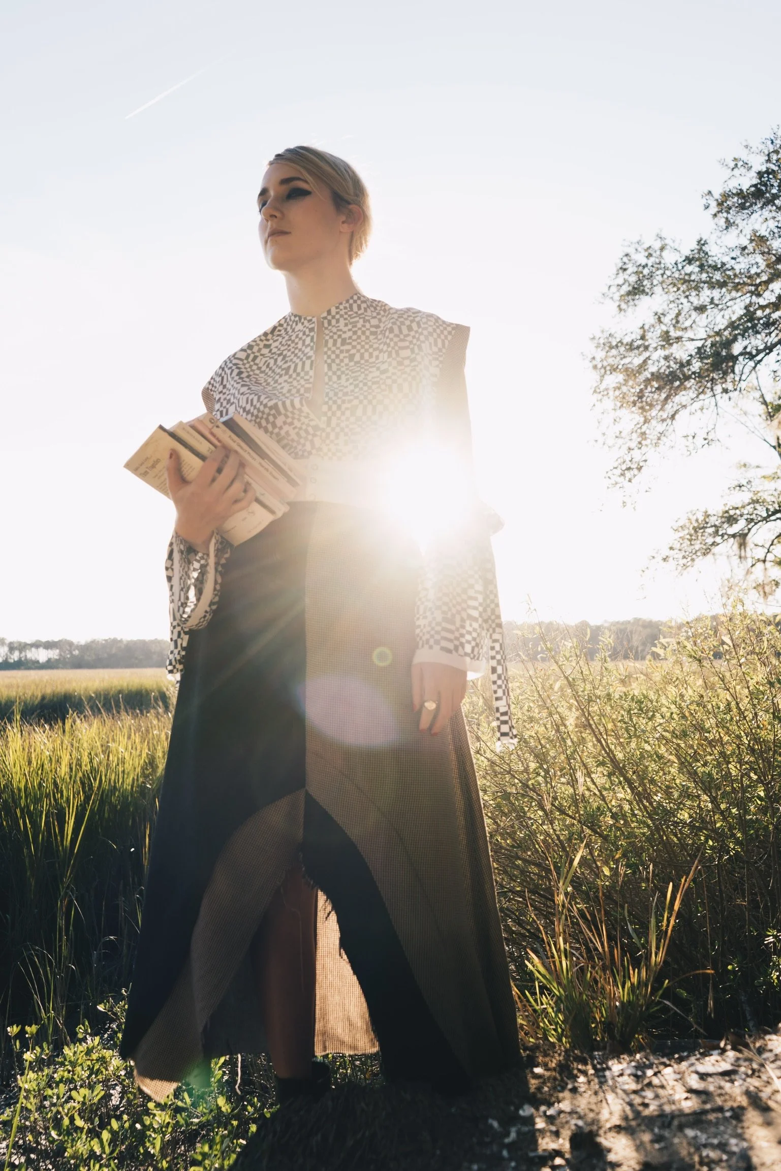 This collection was inspired by the enneagram; a personality test that categorizes each taker in to one of nine different types. Type 4 is the individualist, or the romanticist. This person is defined by their sense of feeling different from other people. Therefore, they end up living primarily in their own curated fantasy world. They are a bit unconventional, and have a tendency to believe they are inherently flawed. This woman, specifically, choses to escape her melancholic reality through books. Lots and lots of book.